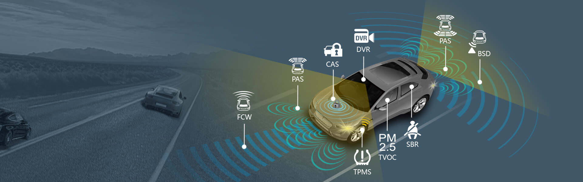 ONE-S Safety Driving System is a freely combinable system designed to all-round safely protection while driving.Users can select which functional modules(form forward collision warning,blind spot detection,tire pressure monitoring,parking assist system,seat belt reminder,air quality monitoring.parking security alert) and display terminals (form driving camera,Android in-car) they need to combine into one complete system.